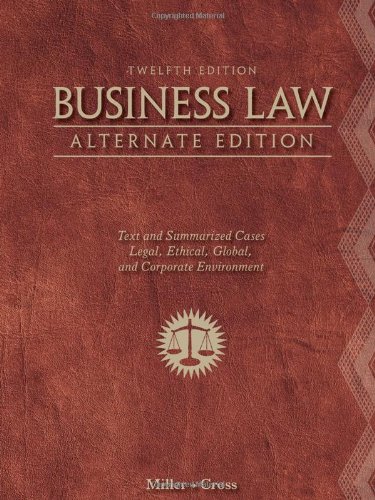 This summarized case version of the best-selling title, BUSINESS LAW, ALTERNATE EDITION offers a comprehensive, authoritative, and reader-friendly delivery of classic black-letter law blended with coverage of contemporary issues and cases. The cases, content, and features of the 12th edition have been thoroughly updated to represent the latest developments in business law. Excellent assortments of cases are included, ranging from precedent-setting landmarks to important recent decisions. Ethical, global, and corporate themes are integrated throughout. Numerous critical-thinking exercises encourage you to apply what you have learned to real-world issues. In addition, the text offers an unmatched range of support materials--including innovative online learning resources.